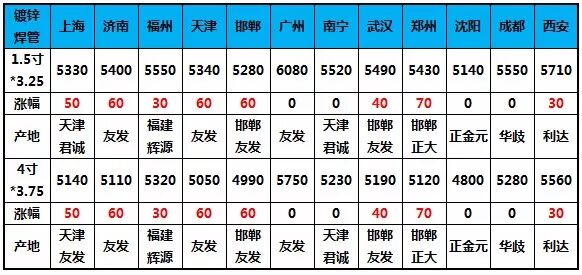 6日天津友(yǒu)發新(xīn)國標鍍鋅鋼管(guǎn)出廠價格統一(yī)上調20元/噸,4寸*3.5mm出廠掛牌價格為5500元/噸;